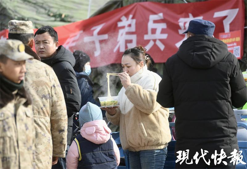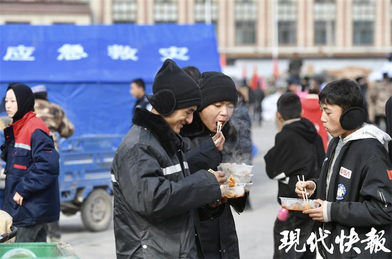 12 月 22 日中午 12 点,甘肃临夏州积石山县大河家镇大河村临时安置点内,一锅锅热腾腾、香喷喷的水饺正在出锅。村民们自觉排队,已经迫不及待想尝一口 " 冬至味道 " 了。