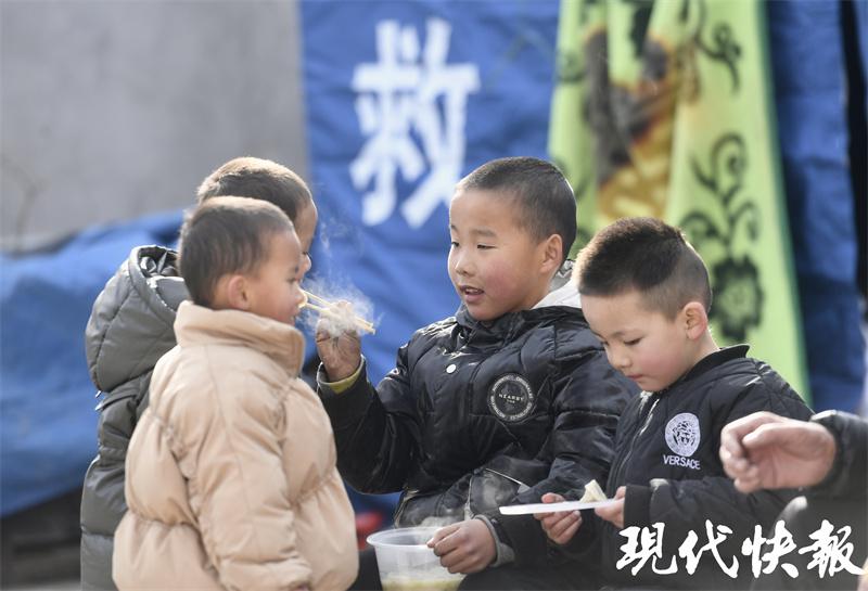 积石山 6.2 级地震 | 吃到热乎乎的冬至饺子,安置点的孩子们笑了