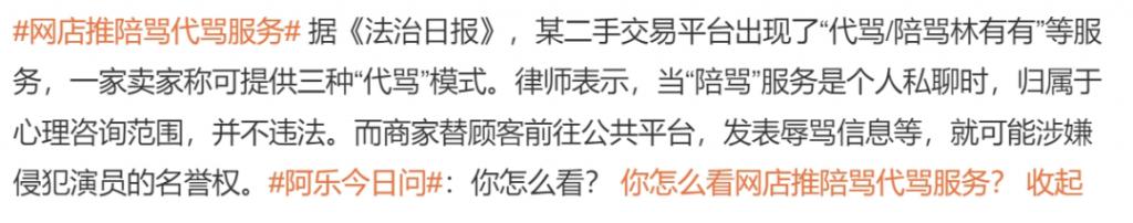 代购、代驾、代跑腿 …… 这些咱都不陌生,可万万没想到,如今 " 代服务 " 都发展到骂人吵架领域了。