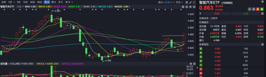 ETF 方面,智能汽车 ETF(159880)大涨 4.35%,领涨整个基金市场。