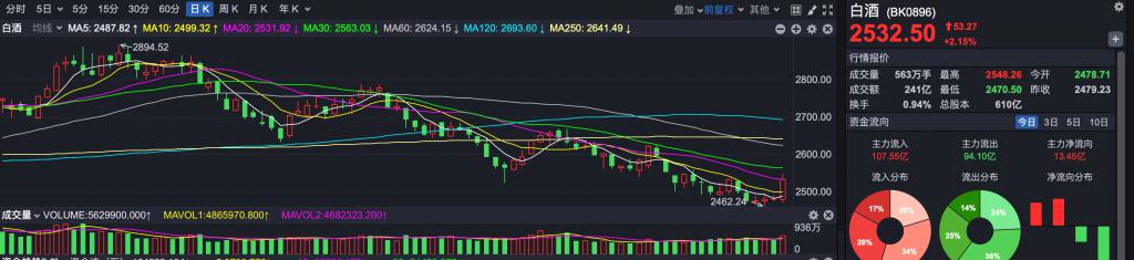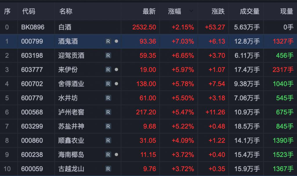 除了汽车产业链外,今天调整依旧的白酒板块也迎来反攻。
