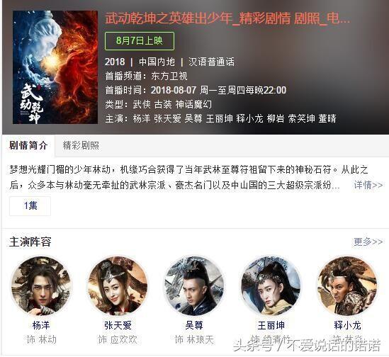 《武动乾坤》与8月7日在东方卫视上映、由杨洋、张天爱、吴尊、王丽坤、释小龙主演、讲述了梦想光耀门楣的少年林动,机缘巧合获得了当年武林至尊符祖留下来的神秘石符、当年曾经危害一时的武道家异魔余孽再次出现在这片土地上,就连林动的宿敌林琅天也最终与异魔余孽同流合污。林动只能联合自己的两个结义兄弟和身旁一干正义的武林人士,靠着当年符祖流传下来的至高武学,同异魔余孽展开了较量,最终林动守护了这片美好的大陆。