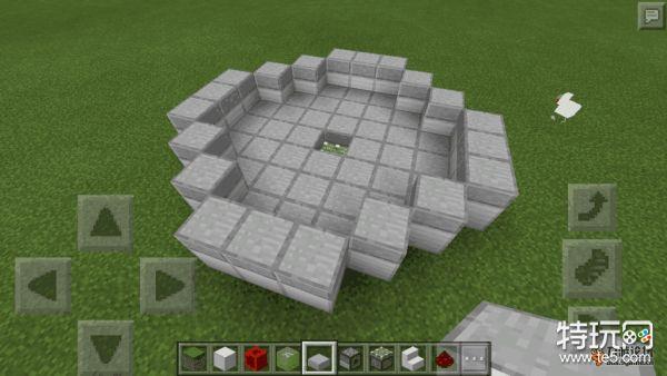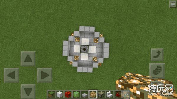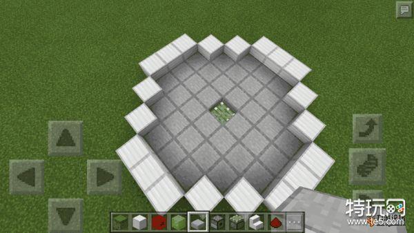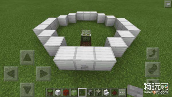 然后在红石线末端的上方,铺上铁块,围成一个类似圆形的图案,当然可以根据自己的喜好来选择方块颜色