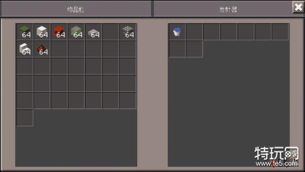 红石块空一格,向上放一个发射器,注意发射器的出口要朝上 之后在