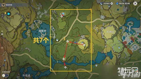 7,灵矩关的东侧位置,能够收集7个,收集还是比较方便的。