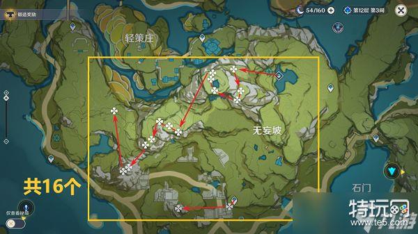 5,在无妄坡的周围,能够收集16个,这是可以使用传送锚点,但是需要爬山会浪费点时间。