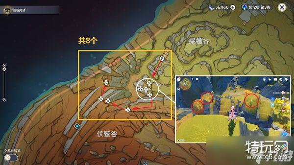 8,采樵谷西南方向的位置,这里能收集8个,位置点离的很近收集起来很快。