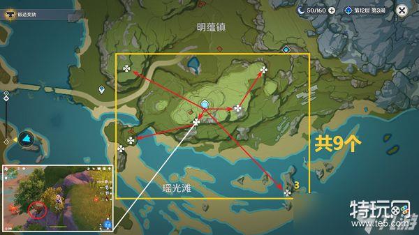 6,明蕴镇周围的位置可以获取9个,这里的位置比较分散,收益也一般。