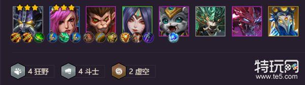 2、阵容分析:四狂野四斗士有肉有控制有输出,二虚空配合打出真伤,虚空行者组织敌方使用技能,此阵容顺利打赢敌方。