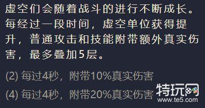 二虚空效果:在对局中虚空们每隔一段时间,虚空们的普通攻击和技能将附带10%额外的真伤效果,最多叠加5层。