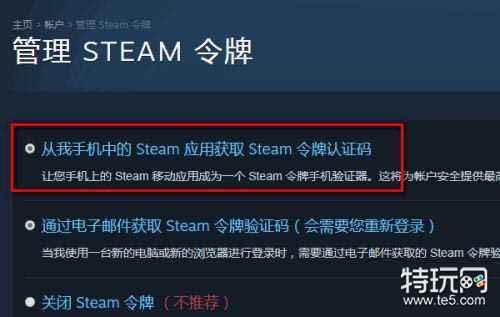 3、成功进入页面后,勾选上“从我的手机中的steam应用获得令牌认证码”;