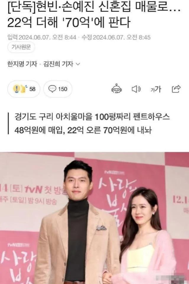 孙艺珍过去赚了不少钱,结婚后就有传闻称孙艺珍出售了自己的一处房产,也赚了不少钱,这次再次出售婚房,可能也是两人商量的结果。
