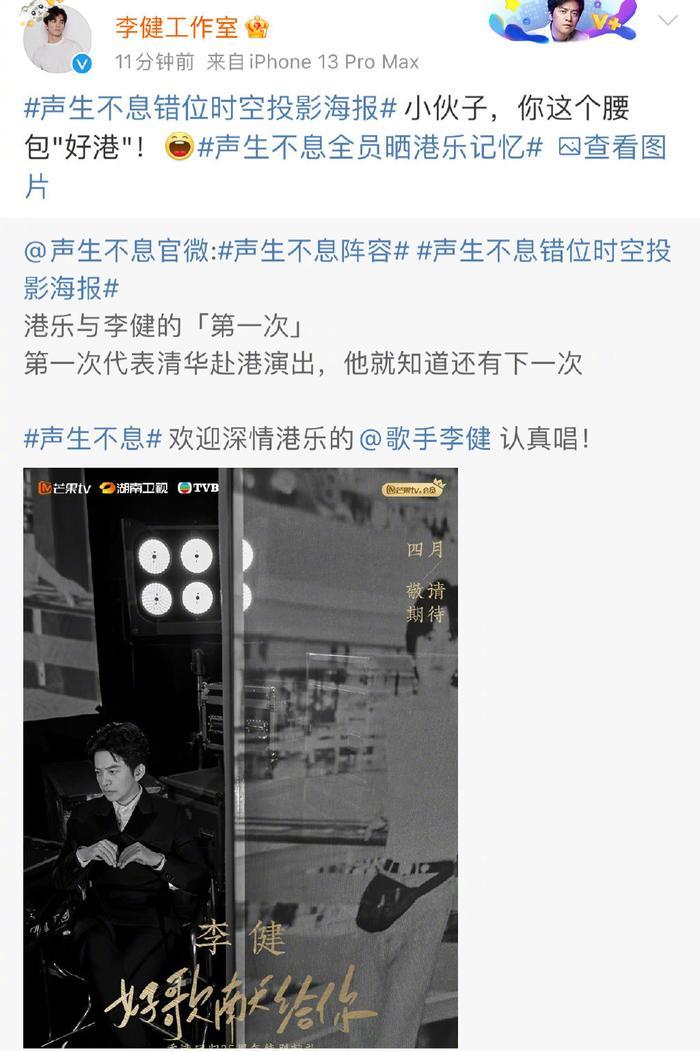 李健工作室发博晒出李健 在1995年代表清华赴港演出的照片……