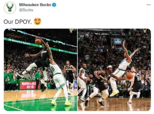 北京时间5月12日,雄鹿在天王山之战神奇逆转凯尔特人夺得赛点,除字母哥轰下40+11外,霍乐迪最后时刻的扳平三分、关键封盖与制胜抢断极为重要。只是霍乐迪最后6.6秒机智用球砸斯马特出界,获得球权一幕容易被忽视,他的精彩表示也是获得NBA官方推特的盛赞。