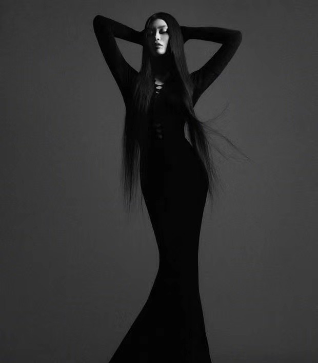 另一组照片中,奚梦瑶身穿黑色紧身长裙,大秀凹凸有致的身材,腰臀比可谓是完美。她双手放在头后,眼神瞥向地面,不屑之中又充满了魅惑,举手投足间都散发着成熟女人的韵味。