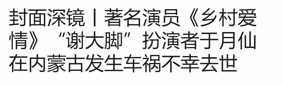 8月9日,娱乐圈突然传来噩耗,著名女演员于月仙因车祸去世,年仅50岁,引发了观众哗然。据说,9日上午,于月仙一行在内蒙古拍片时出现意外,因伤势太重没有抢救回来。有媒体联系上了于月仙的亲弟、本山传媒艺术总监刘双平的助理于英杰,对方证实了噩耗,但具体情况尚不清楚,他和两个大姐正赶去出事地点处理。