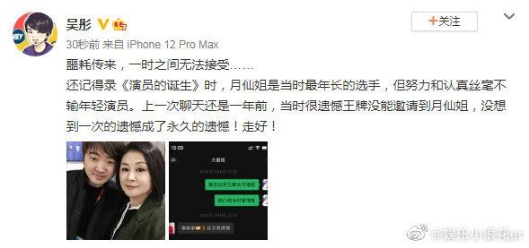 随后,节目导演吴彤表示不敢相信,并晒出与于月仙合照悼念:“没想到一次的遗憾成了永久的遗憾!走好!”