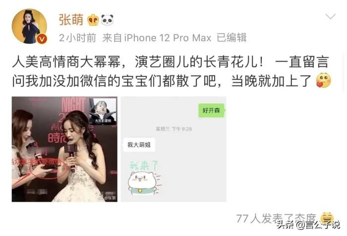 张萌可不犹豫。立马甩出聊天记录力证杨幂加了她微信。