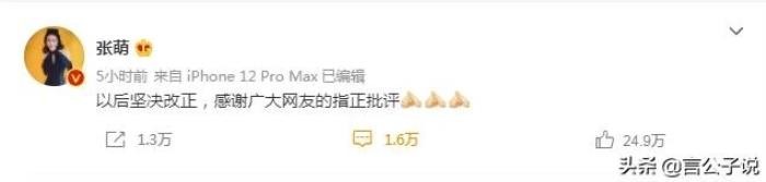 这件事张萌也是迅速道歉。