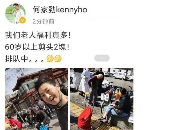 近日,何家劲现身西安街头,跟着一群老年人排队等待剪头,还不忘夸一夸西安的惠民政策,喜滋滋地表示自己只需花2元钱。