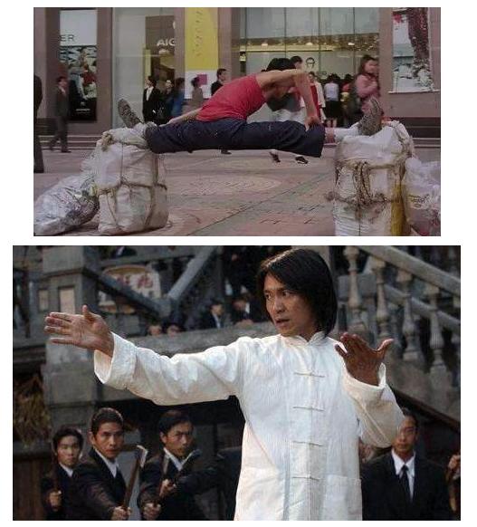 其次,周星驰是会真实功夫的。他曾拜叶问弟子黄淳梁为师学习咏春拳,之后又随黄淳梁的徒弟温鉴良学习,应该说周星驰的咏春是得了真传的。而且论辈份,周星驰应该算是叶问的徒孙,李小龙的师侄了。