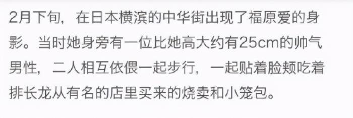 2月下旬,福原爱和一高大帅气的男子出现在横滨,两人互动亲密,还一起贴着脸颊吃着烧麦和小笼包。
