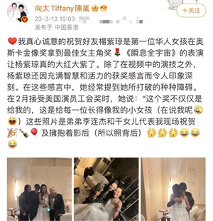 向太陈岚晒出一组杨紫琼夺得奥斯卡影后的后台画面,原来在杨紫琼获得奥斯卡的时候,李连杰就在后台等待着杨紫琼,并且给杨紫琼带来了最温暖诚挚的祝贺,可以说两个人的友谊实在是深厚的很。