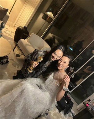 当天李连杰还是带着大女儿Jane一起来到现场的,因为杨紫琼是李连杰女儿的干妈,所以他们还是关系相当的亲密,杨紫琼还特意将奖杯拿给Jane,两个人一起露肩合影。画面真的是好温馨。