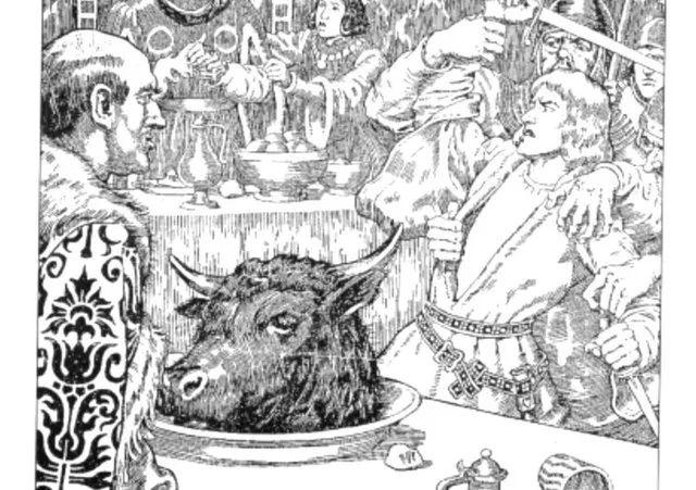 4、在乐队的伴奏下,反派围成一圈,合纵刺杀先王和王后。这是效仿历史上的哪一个桥段?