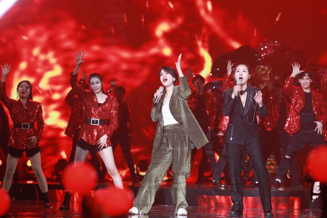 网友直呼田姐A爆了。最后两人合唱费翔的两首歌,突然变装的两人对望演唱,合作状态极佳。