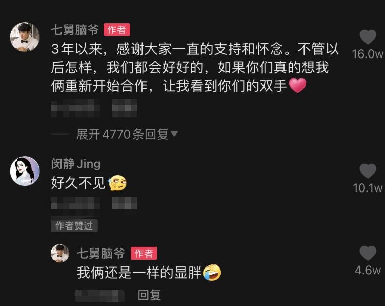 这次很多粉丝也是表示现在二人还是很有默契,闵静也在七舅脑爷的视频下留言好久不见,看来这二人的关系还是很不错的,不少粉丝都觉得这二人真的是引回忆杀了。