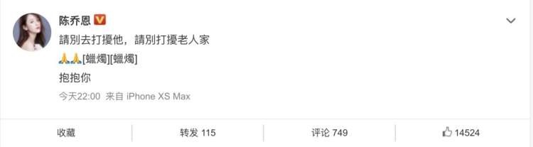 好友陈乔恩希望大家给明道及其家人空间,她在昨晚10点发文:“请别去打扰他,请别打扰老人家。”
