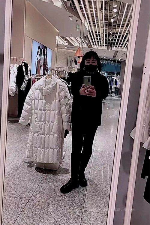 视频中,李菁菁从头到脚穿着一身黑衣,手指上硕大的戒指非常吸睛。她在商场某家店铺内,拿着手机对着镜子拍摄,不断旋转身体,变换各种姿势,展现出对自己身材的满意。李菁菁的身材明显苗条,长腿纤细如筷子,令人瞩目。