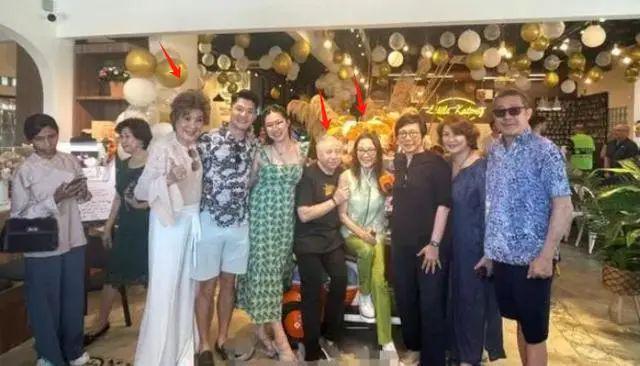 当日,杨紫琼身穿嫩绿色短袖,搭配一件草绿色长裤,显得非常的 " 娇嫩 ",而她 77 岁的丈夫则亲昵地坐在她的身边,双手扶着对方的胳膊。亲友团们也都纷纷共同合照,其中杨紫琼的母亲站在最外侧,开心的竖起大拇指。