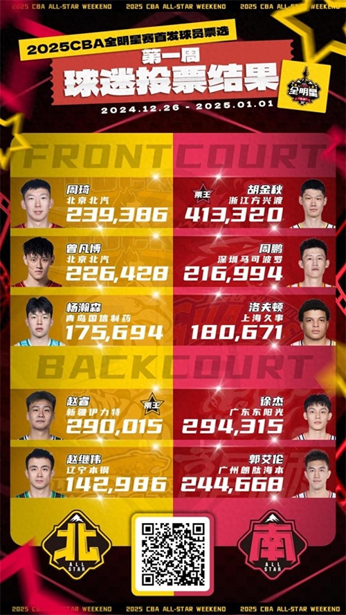 CBA 全明星票选一直备受瞩目,今年也不例外。这不,第一周的票选结果一出来,就引发了不小的讨论。大家猜猜看,南区和北区的票王会是谁呢?