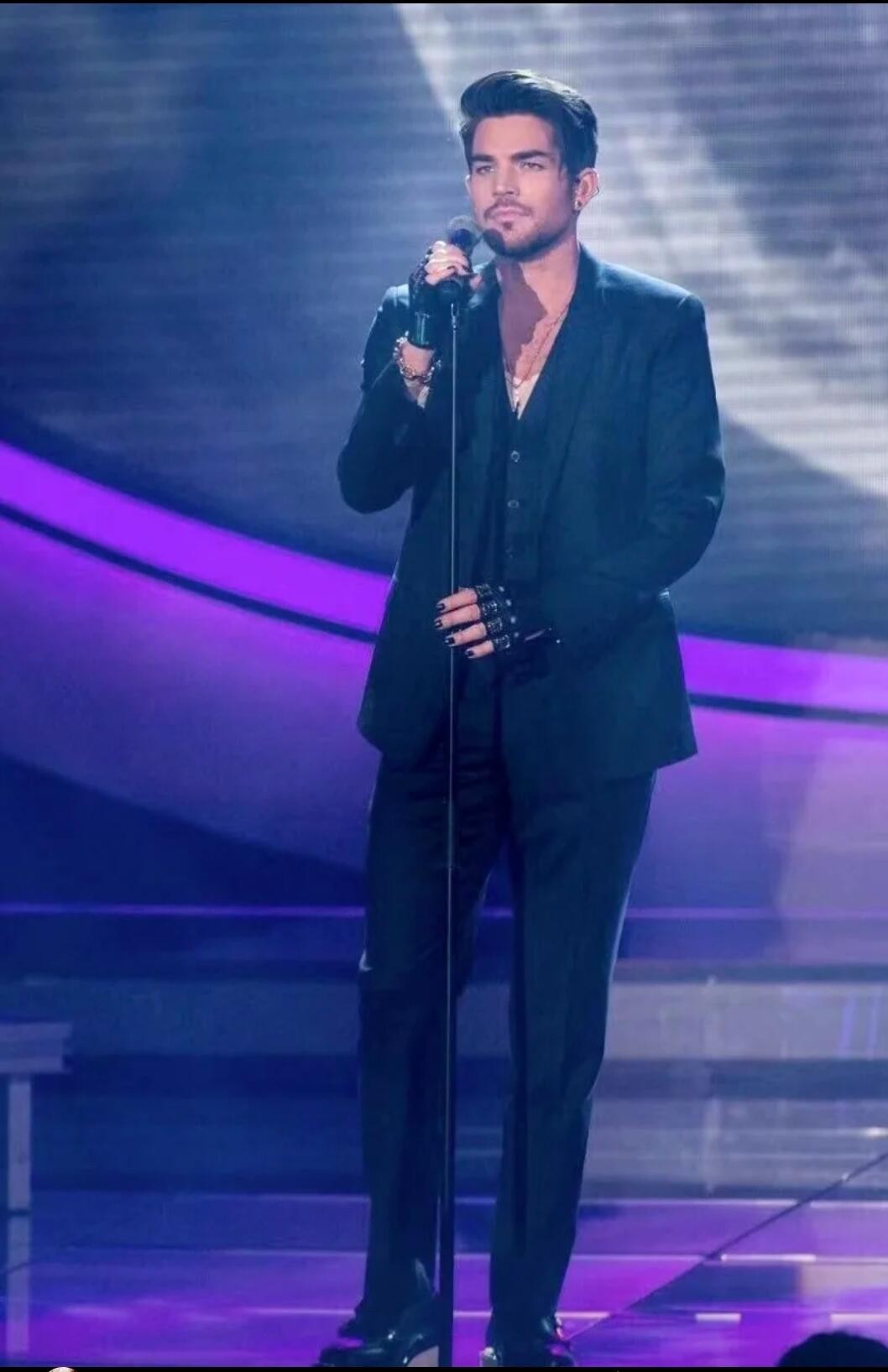 在舞台上,亚当的表现总是令人瞩目。他不依赖高音就能完美掌控全场,这次《Outlaws of Love》的演绎也不例外。舞台上的他,每一次呼吸都仿佛在讲述一个故事,让人完全沉浸在他的歌声中。