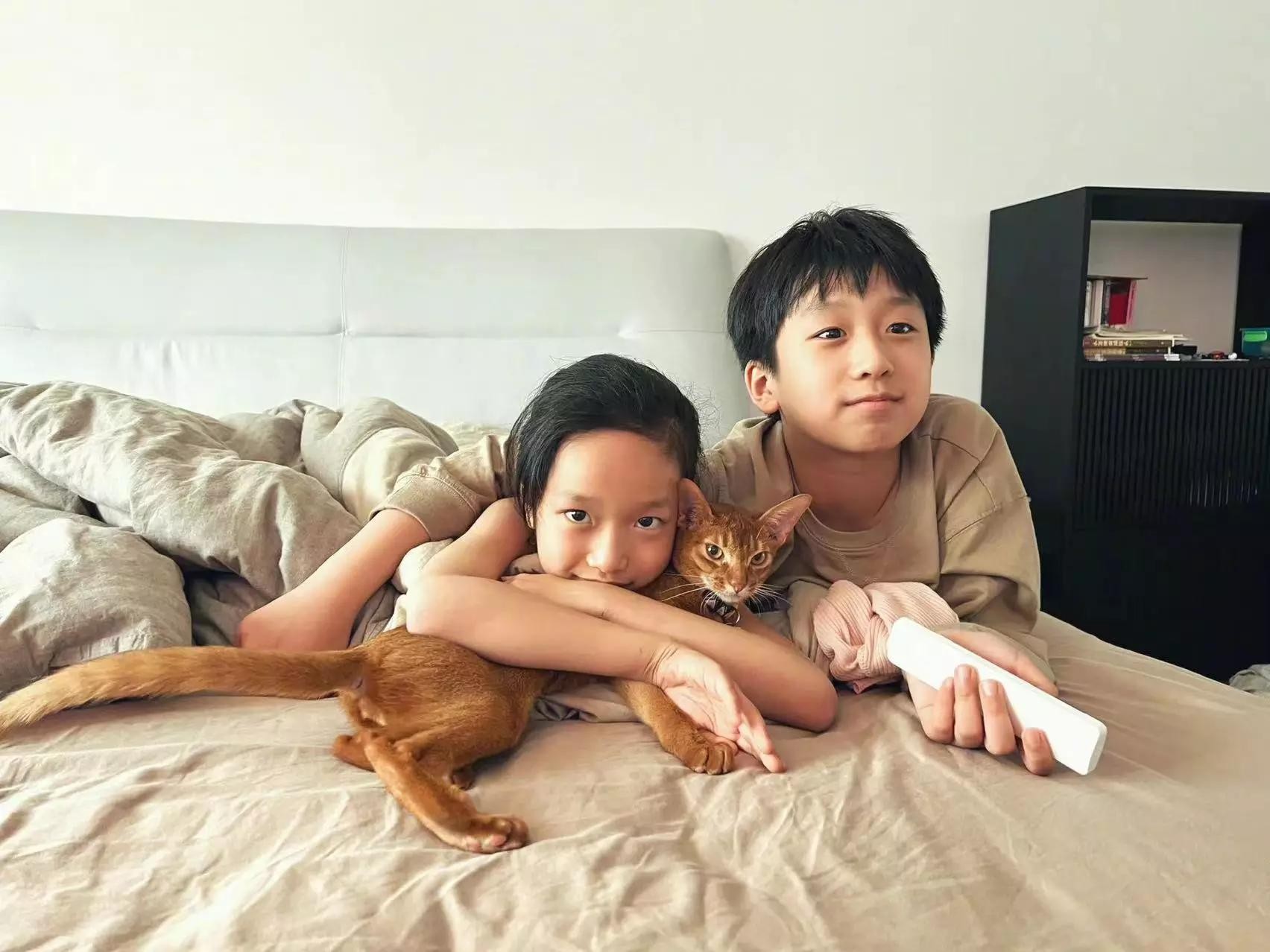 婚后,两人生育了一儿一女。儿子小核桃今年10岁,女儿小枣也已经8岁,兄妹俩长得特别像爸爸,颜值都非常高。