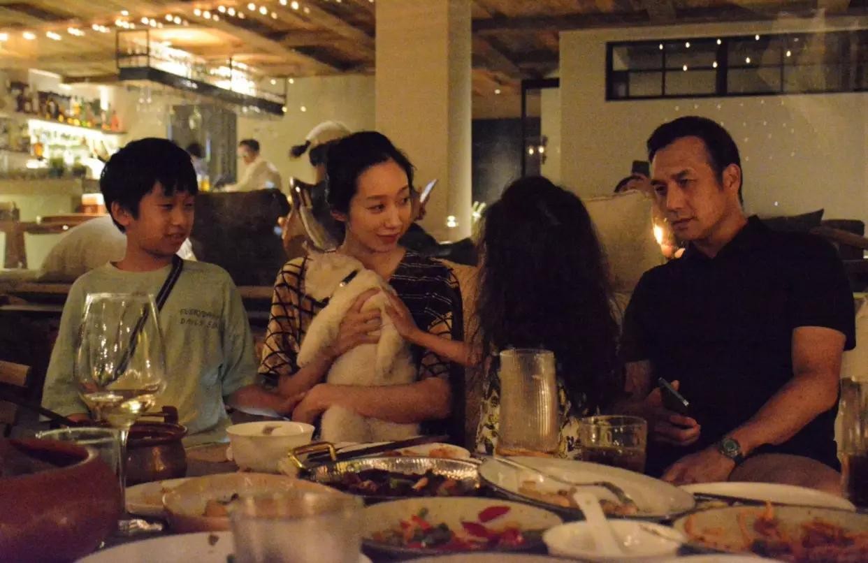 照片中,一家人围坐在餐桌旁,桌面上摆满了吃剩的美食。黄觉的老婆麦子抱着猫咪坐在C位,女儿小枣似乎正在和她诉说着什么事。