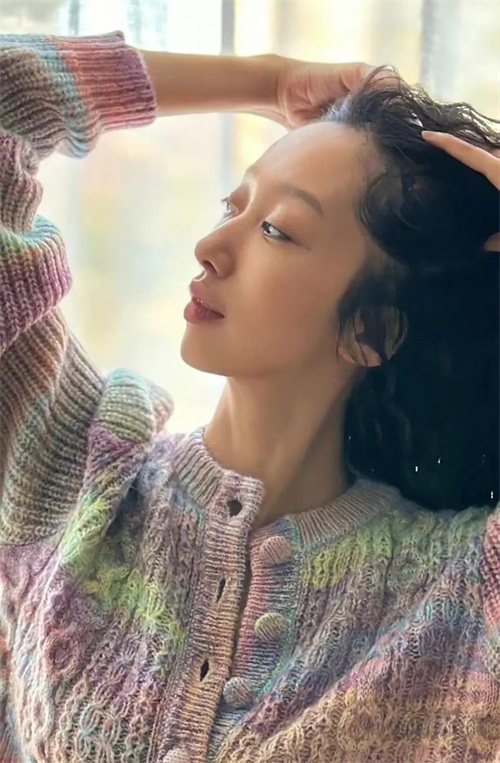镜头中,麦子侧着脑袋,双手举起轻轻地拨弄头发,整个人文艺范十足,显得特别有气质。