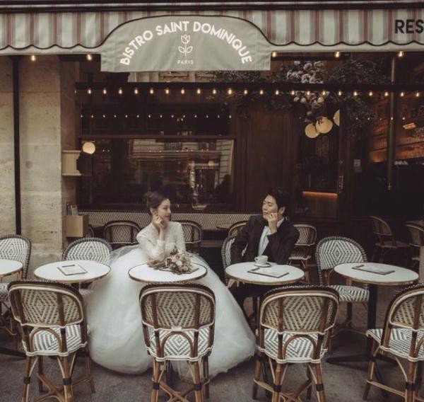照片中,爱丽丝穿着性感的蕾丝紧身婚纱,朗朗则一身西装,两人十分甜蜜的一起拍合照!此外,两人还穿上了红色的传统中国结婚服装,拍了一张国风婚纱照。
