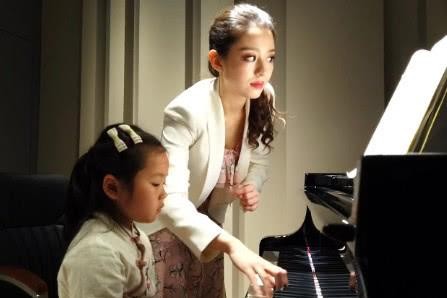 看下面这张照片,非常有气质,有些像明星董璇,又有些像韩国某些明星,披散着一头长发,无愧于“美女钢琴家”的称号。