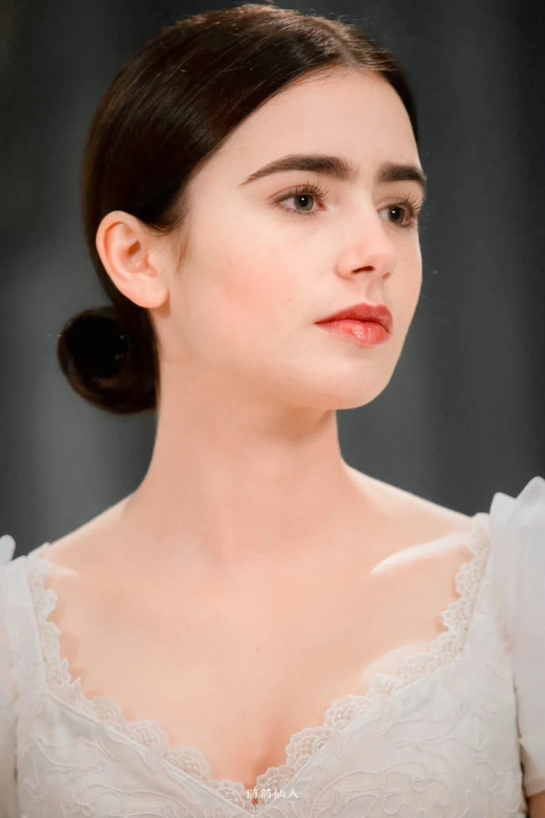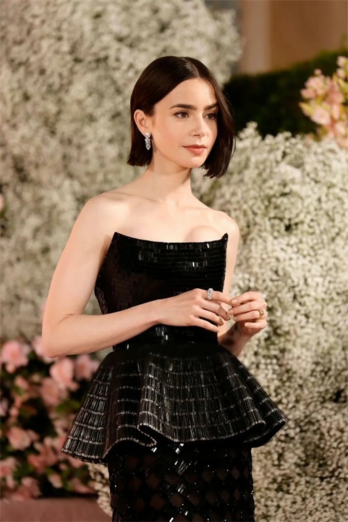 莉莉・柯林斯的美丽,如同古希腊神话中的女神般令人陶醉。她拥有精致的面容,深邃的眼眸犹如藏着无尽的秘密,高挺的鼻梁和樱桃般的小嘴,组合成了一幅完美的画卷。那一头浓密的黑发,随意地披散在肩头,更增添了几分神秘的魅力。