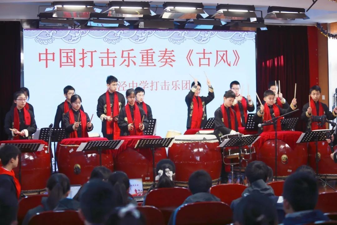 鼓声咚咚,一曲铿锵有力的打击乐《古风》宣告着新学期的活力开启,昂扬的鼓点激起了同学们对于新学期的热情。学校借由春节档热门影片,带领学生们回顾中国历史中的光影篇章,探寻民族复兴的希望之光。