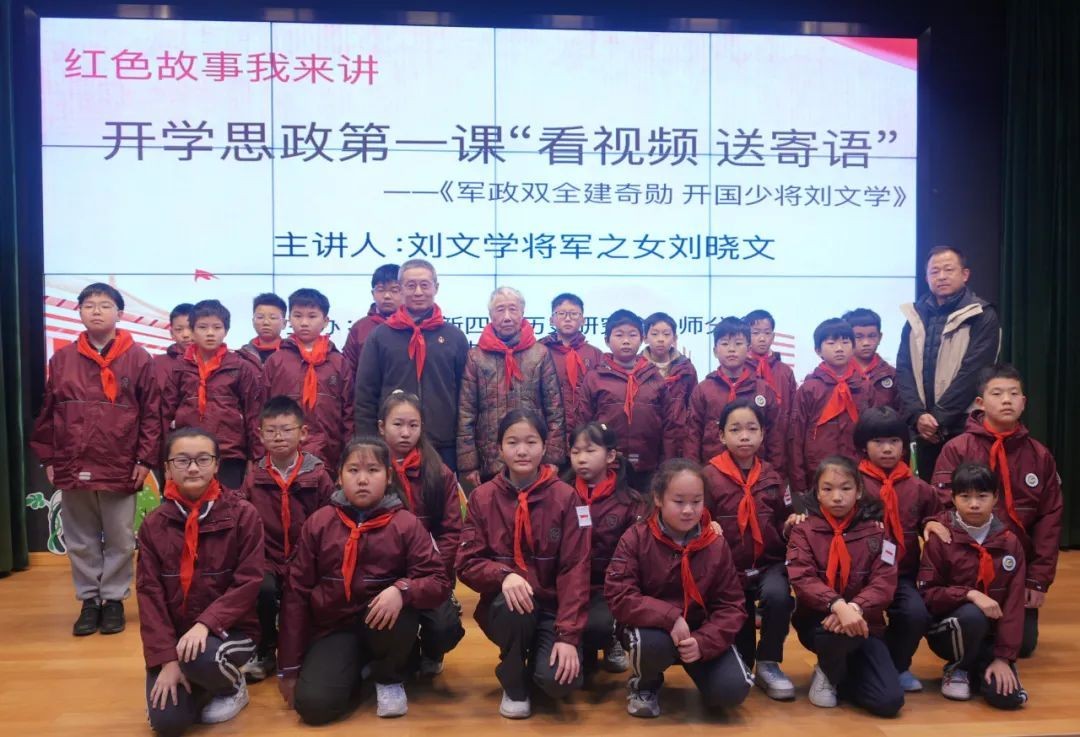 开学第一天,古北路小学开启了一场“开学思政第一课”,学校邀请了开国少将刘文学之女刘晓文来到校园,和同学们一起观看电视专题片《军政双全建奇勋 开国少将刘文学》,刘晓文为同学们送上新学期的寄语,希望同学们努力学习,立志成才。