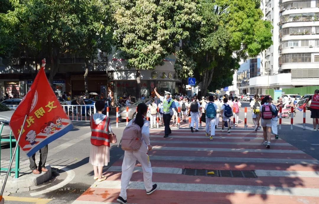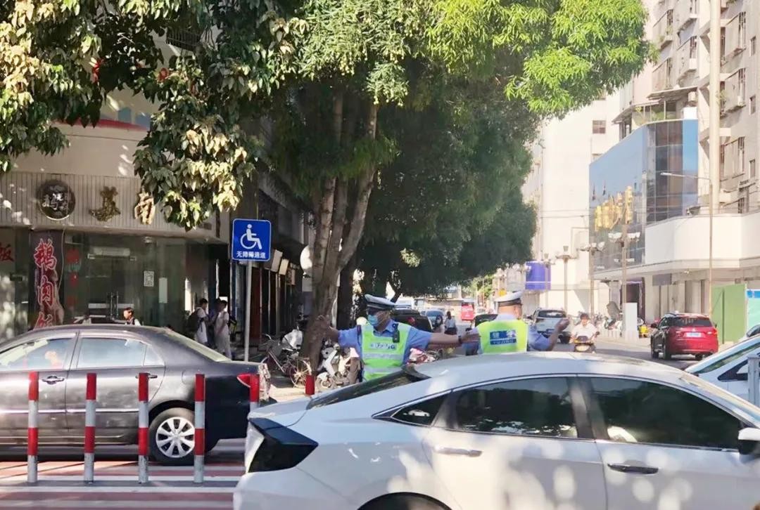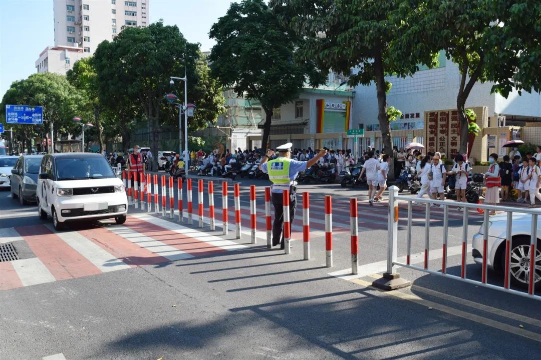 今年已是罗金松加入辅警队伍的第五年,东厦长平路口和东厦小学北校区校门口是他的两个执勤“常驻点”。一个是医院周边区域路口,另一个则是学校门口,人、车流密集,执勤压力较大。由于东厦小学北校区地处闹市区,周边道路较为狭窄,加上大量接送学生的车辆涌入,很容易造成道路拥堵。早上7点20分和下午4点20分左右,罗金松会准时出现在校门口为上下学的学生“保驾护航”,成为大家熟悉的“胖叔叔”。
