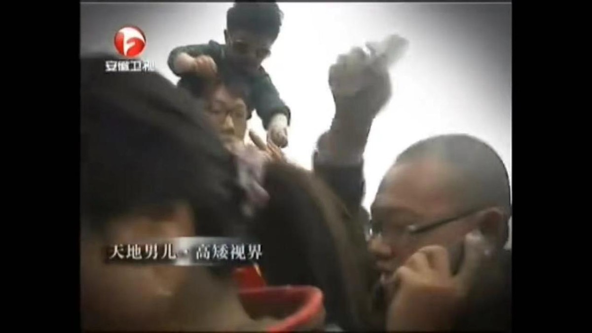 但是由于张欢的身高,有一些地方他需要弯腰低头走过去,有时不注意还会碰到头。有一次,在贵州火车站的一位工作人员看到后,便上前来帮助张欢,给他指引。