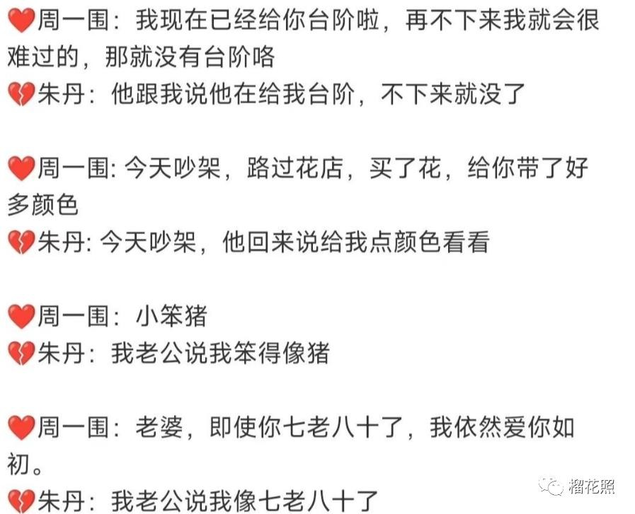 一时之间,网友不知道该心疼朱丹还是该心疼周一围了。