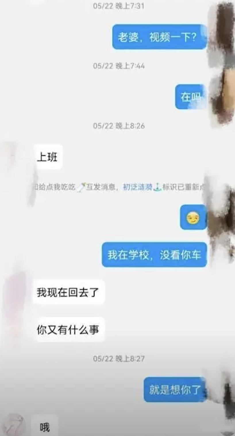聊天记录显示,每当老公想和她视频时,她总是以“在上班”为由拒绝。甚至当老公说“到学校找你,没看到你的车”时,她也只是淡淡地回应“我已经回去了”,对老公的关心显得非常不耐烦。