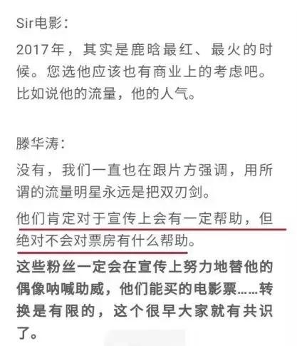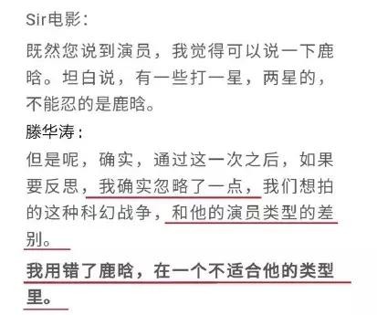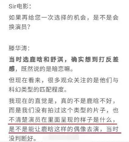 而近期滕华涛导演接受采访时,语不惊人死不休,表示“我用错了鹿晗,在一个不适合他的类型里”,这是在反思还是在甩锅?