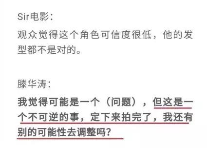 一部电影是无数工作人员共同的心血,滕华涛接受采访时讲了很多道理,不断为电影挽尊。对于电影接踵而至的差评,他称鹿晗饰演的江洋的刘海造型,也许是片中存在的问题之一,但是电影已经拍完,不可能再进行调整。